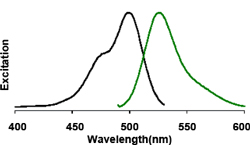 图 5 . EvaGreen 在 PBS 缓冲溶液中结合 dsDNA 后的激发和发射光谱